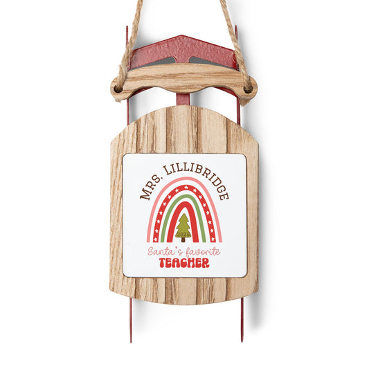 Santa's Favorite Teacher Sled Ornament | custom sled christmas gift personalized