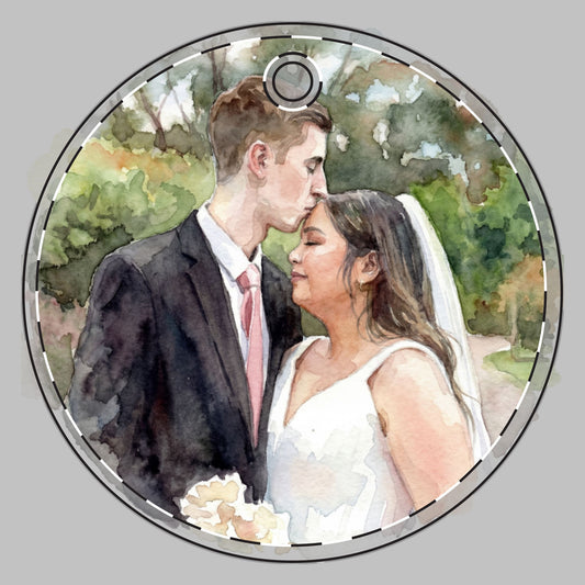 Personalized Double‑Sided Ceramic 1st Married Christmas Custom Ornament — Watercolor Portrait Front & “First Married” Back (Custom Photo, Names, & Year)