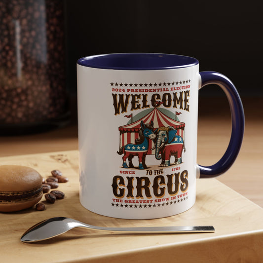 Political Circus Coffee Mug (11, 15oz) - Republican Democrat Independent Elephant Donkey