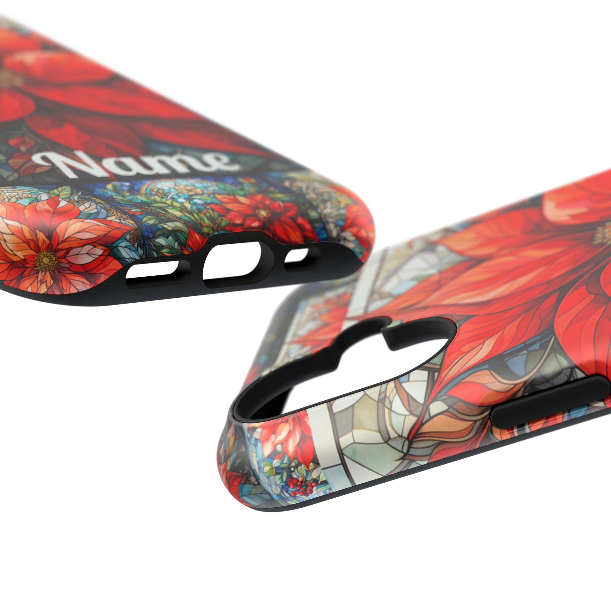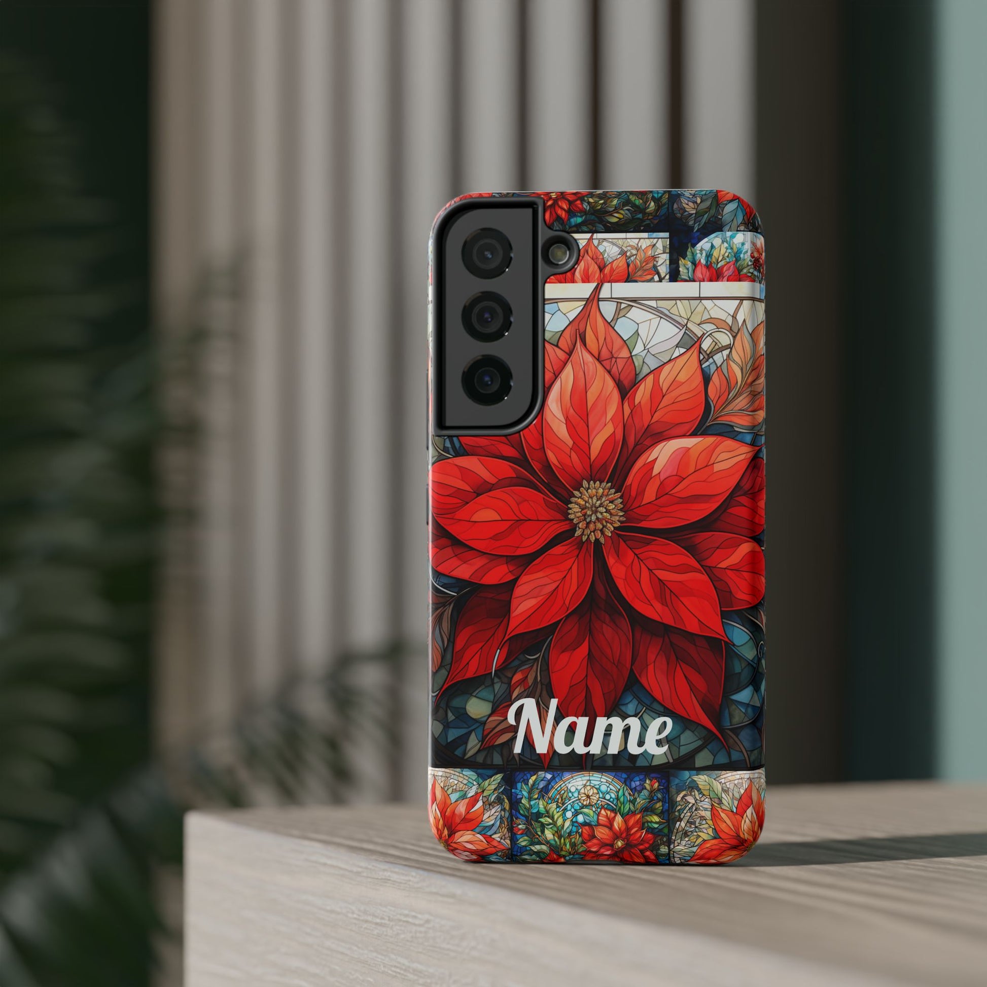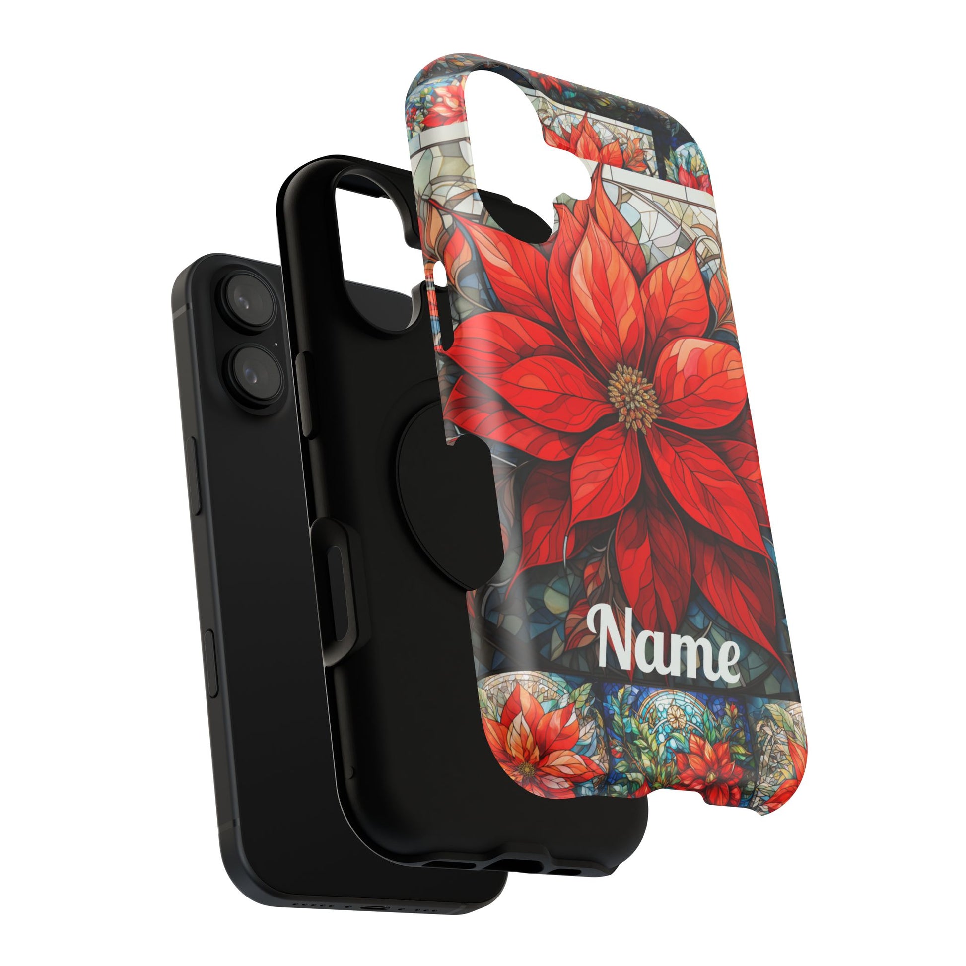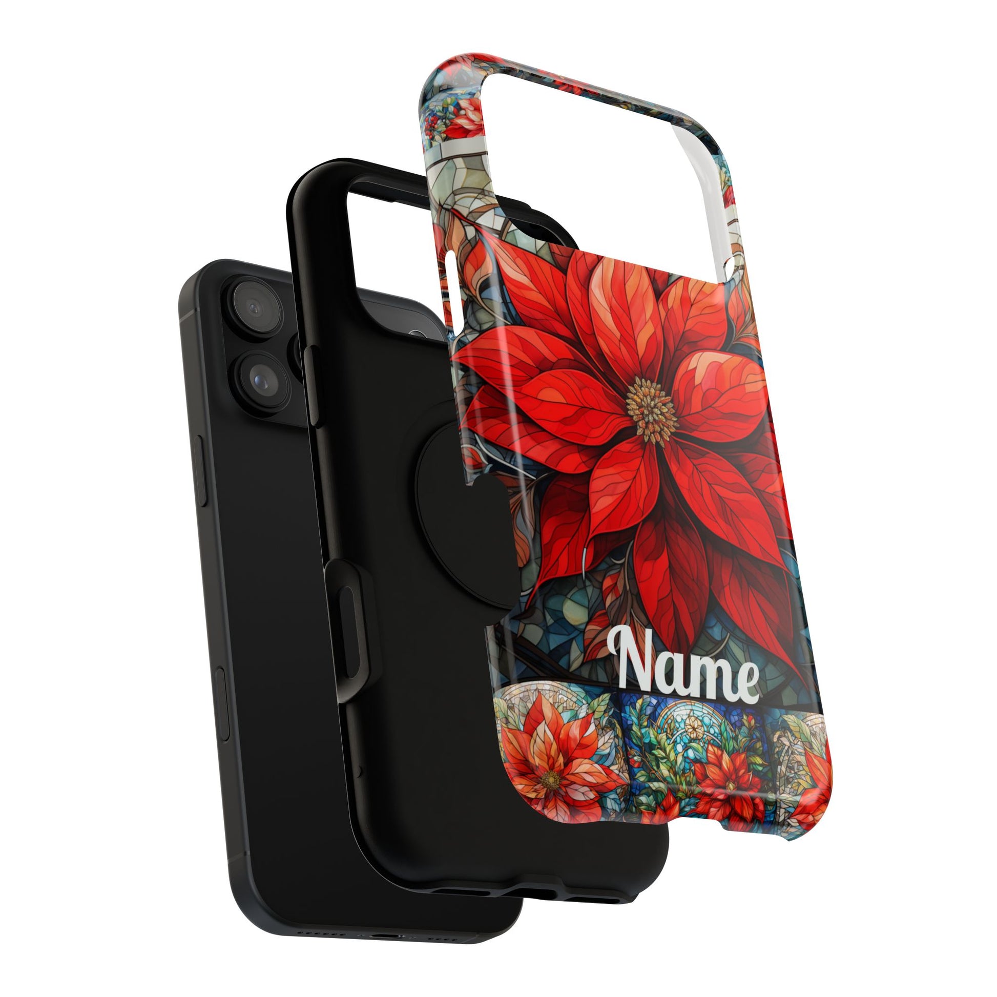 Christmas Poinsettia Stained Glass Phone Case - Personalized Christmas Phone Case Impact-Resistant Case