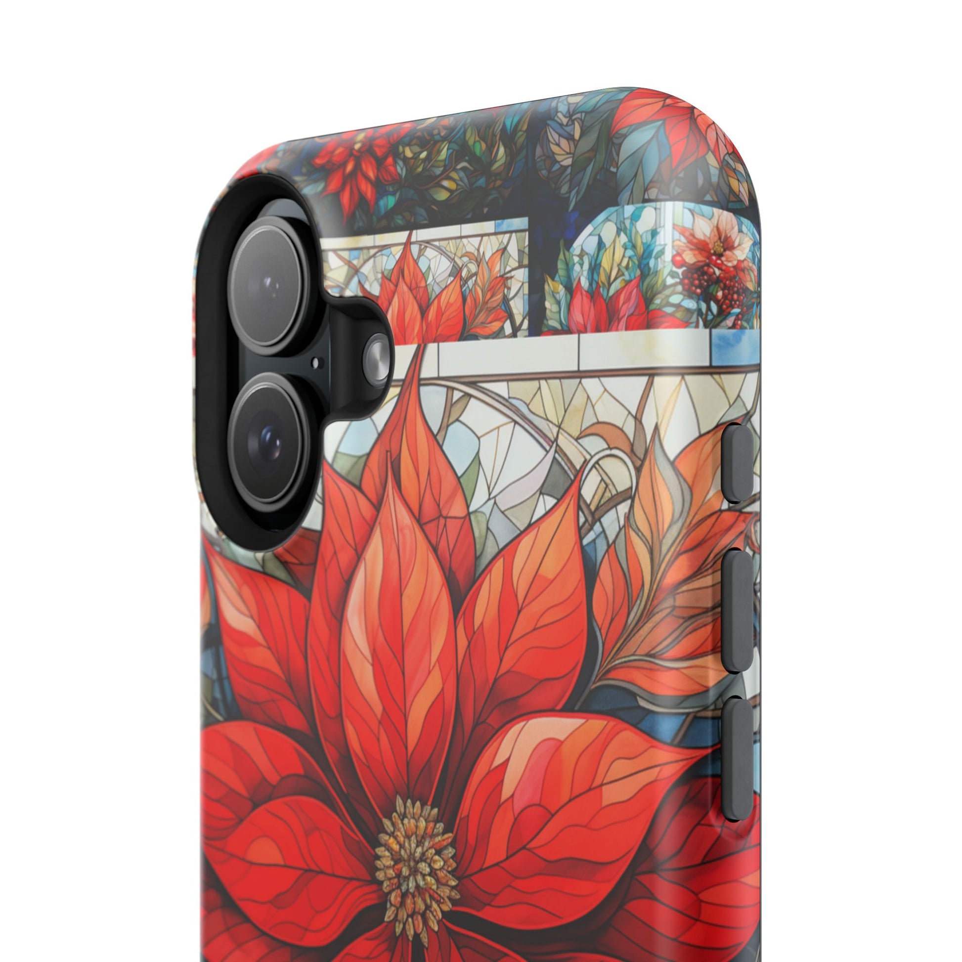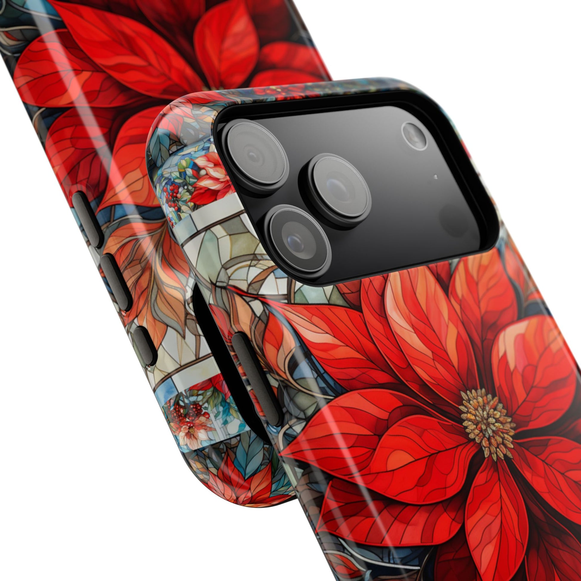 Each petal and leaf is outlined like real glasswork, giving your device the sparkle of handcrafted art with the durability of a dragon’s hide. (Okay, maybe not that tough — but it’s close.) Whether you're a holiday enthusiast, a floral fanatic, or just someone who likes to flex festive flair, this case is your new seasonal MVP. ❄️