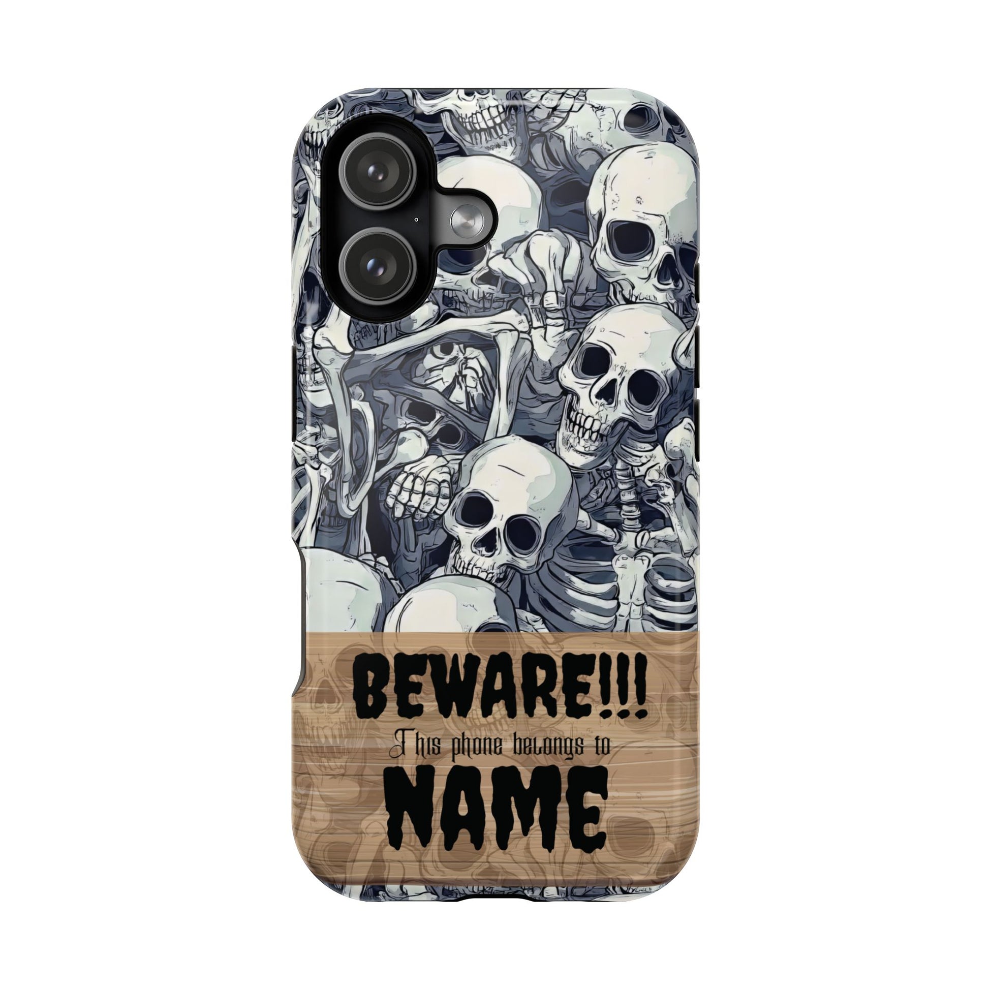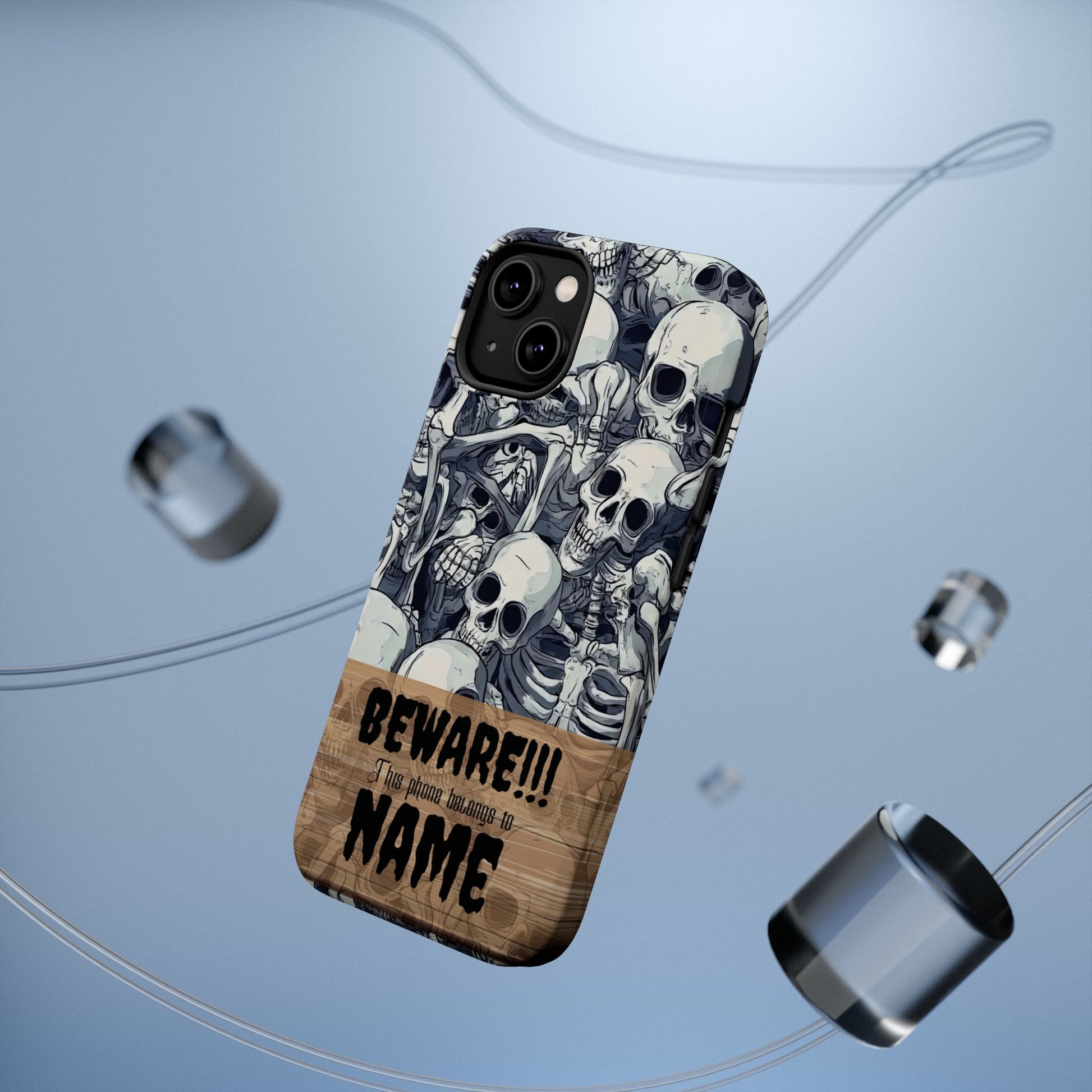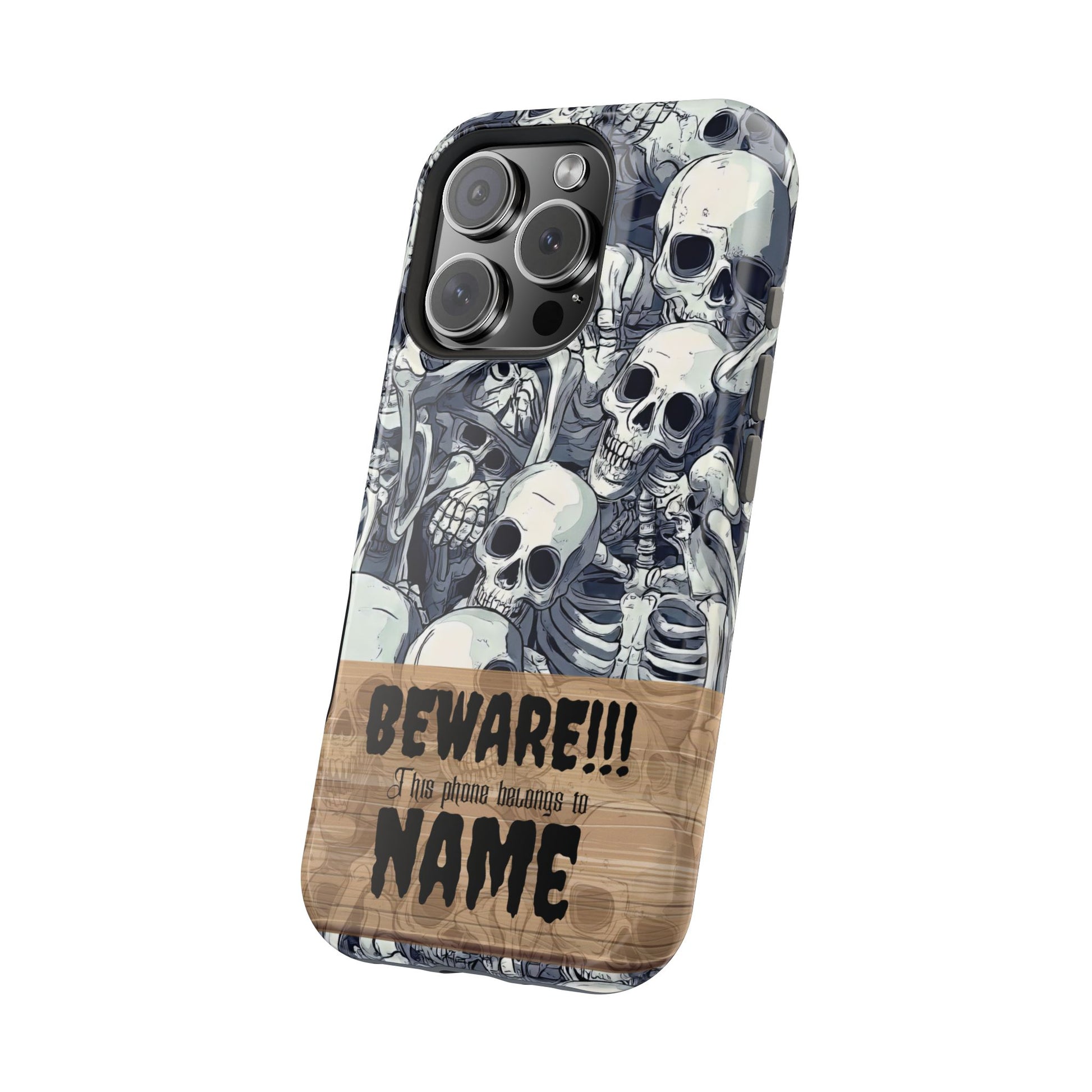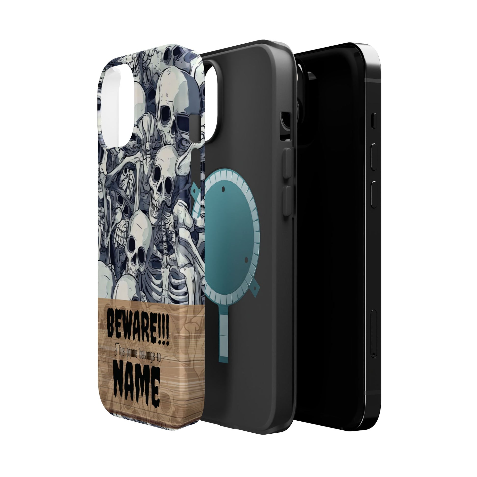 Custom, Personalized Halloween Magnetic Tough Cases for iPhone - Beware Skulls with Name
