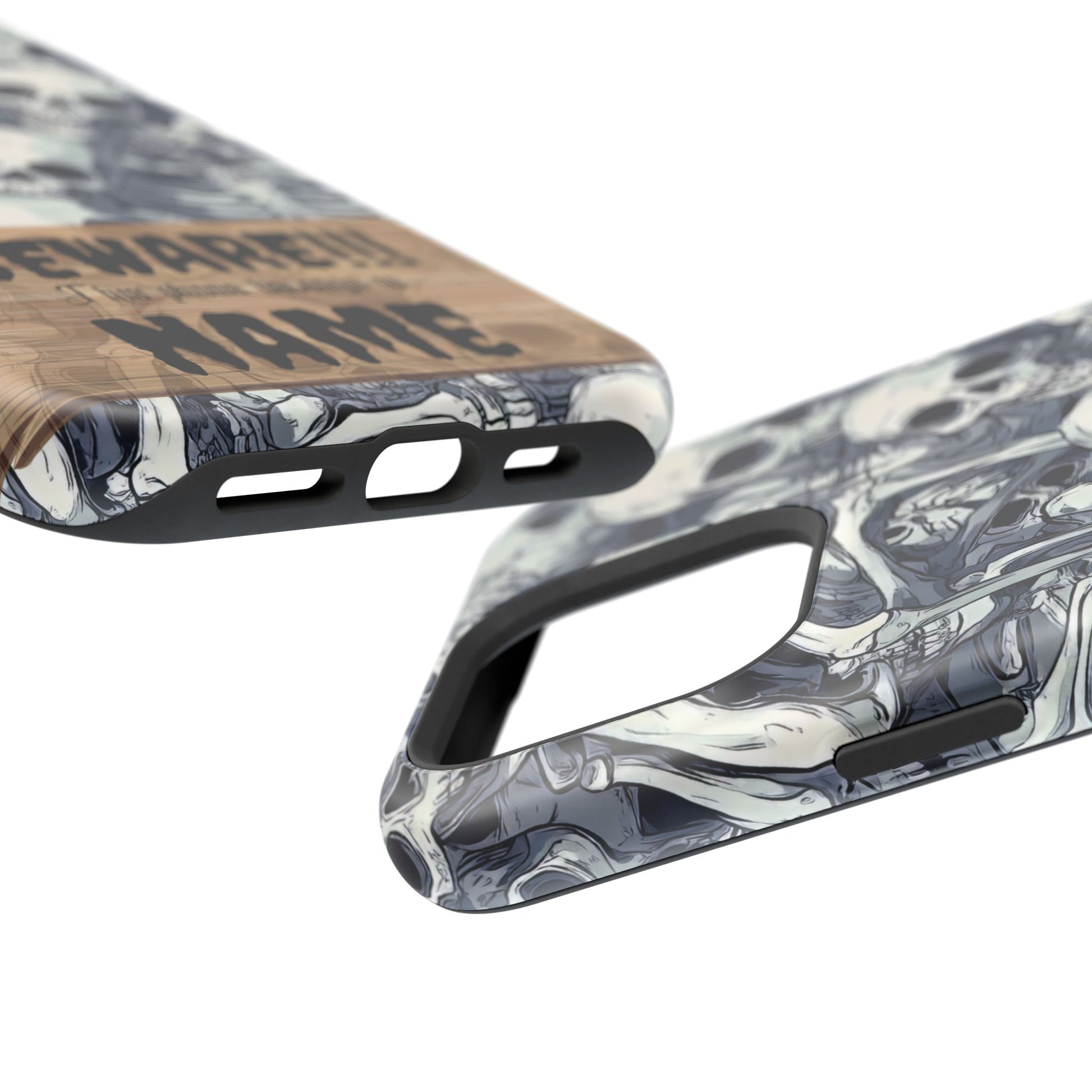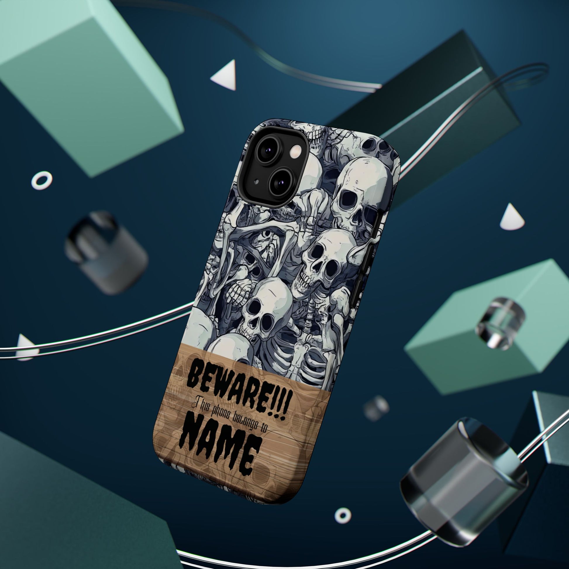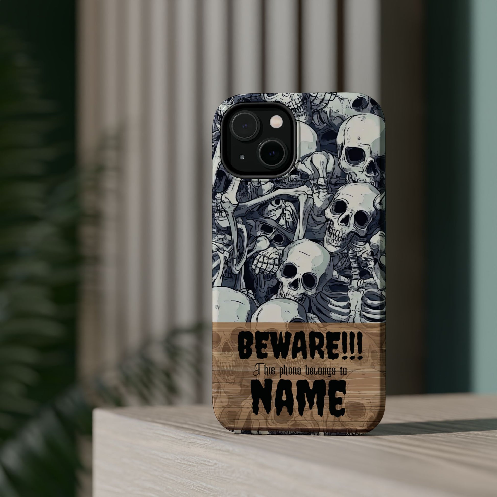 Custom, Personalized Halloween Magnetic Tough Cases for iPhone - Beware Skulls with Name