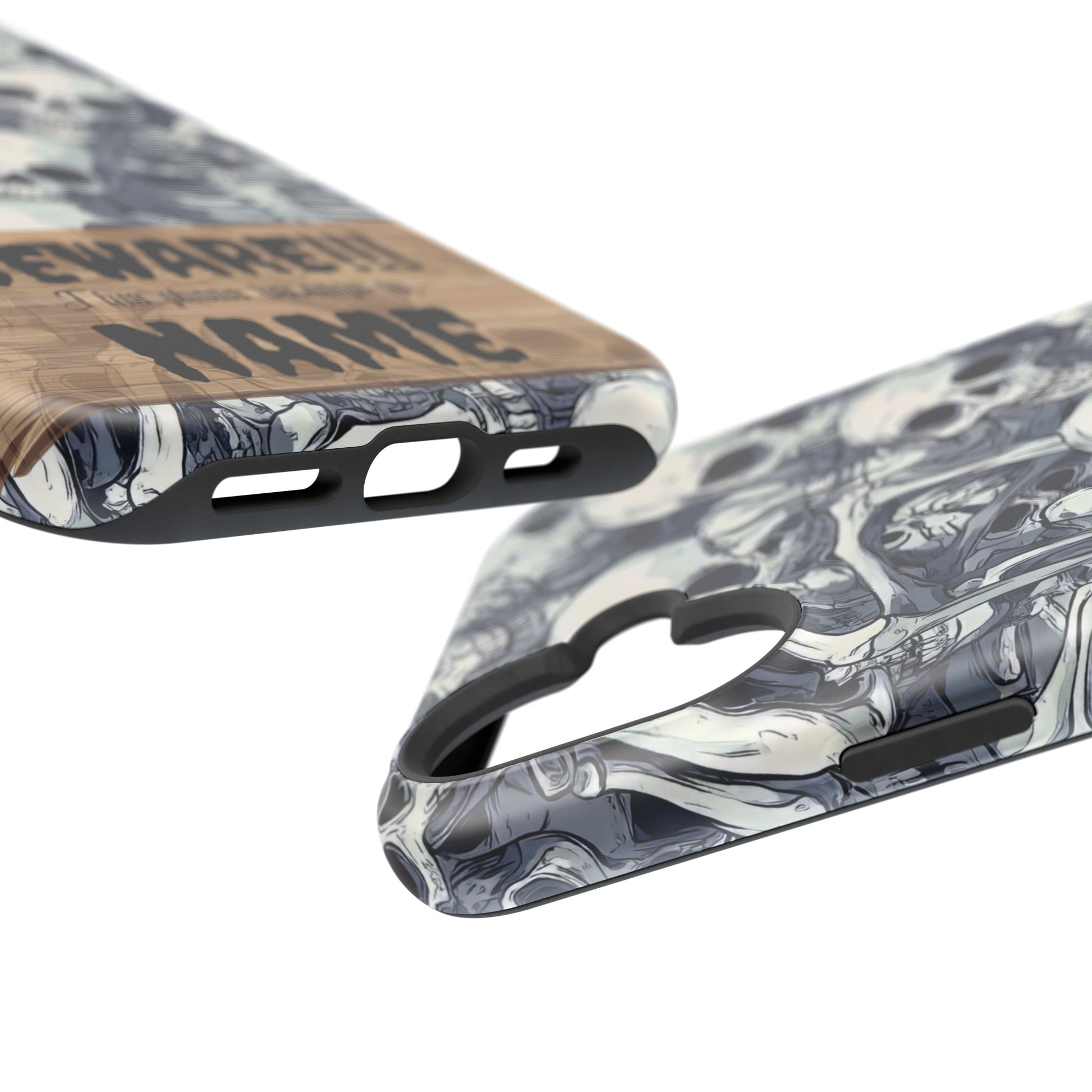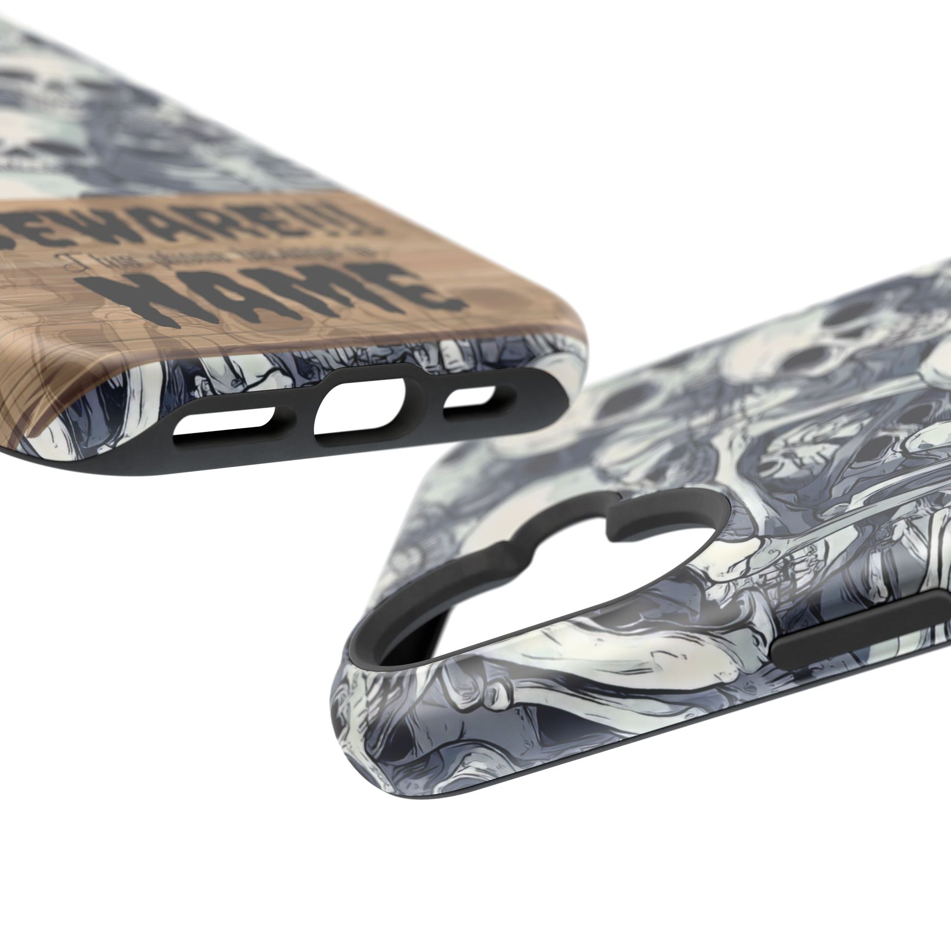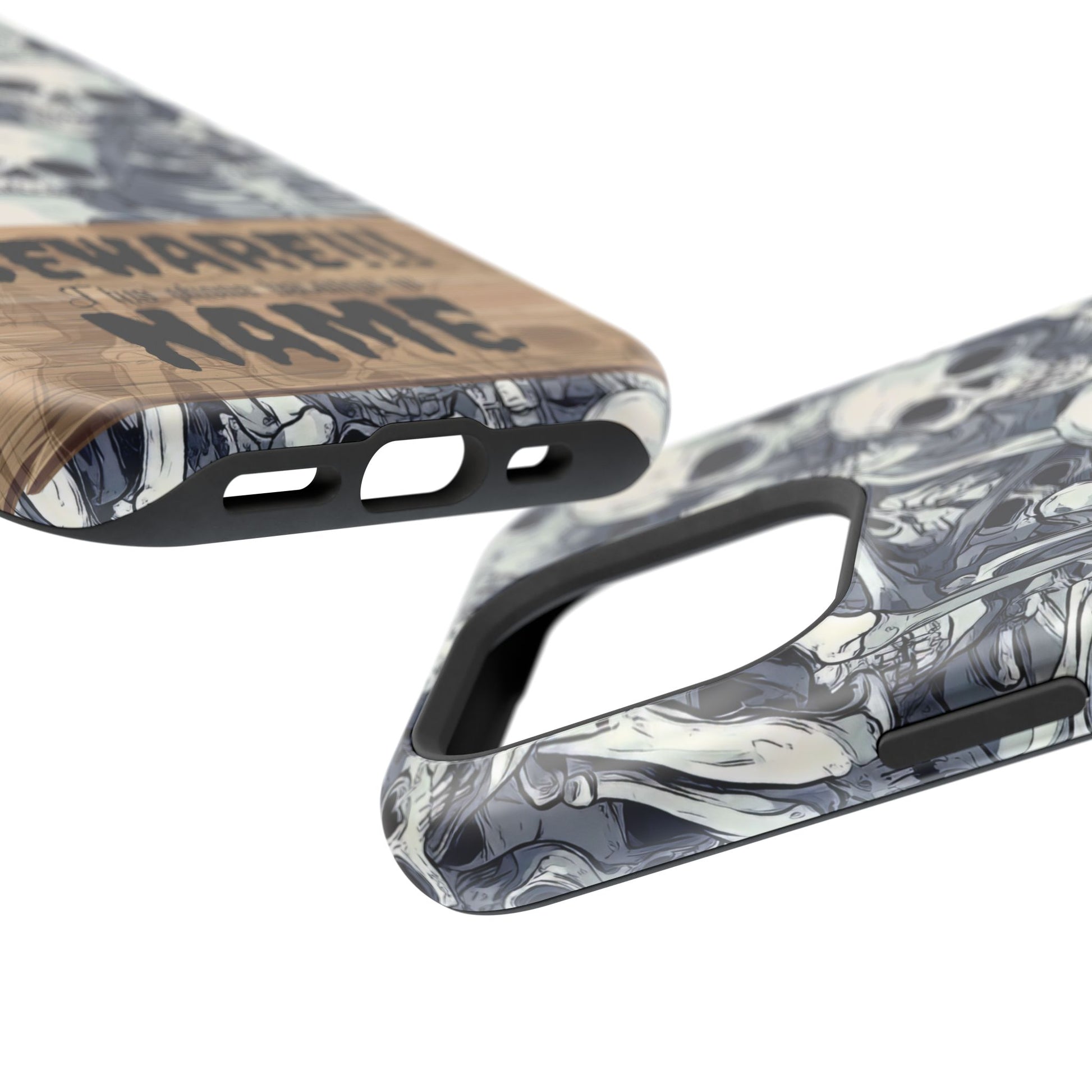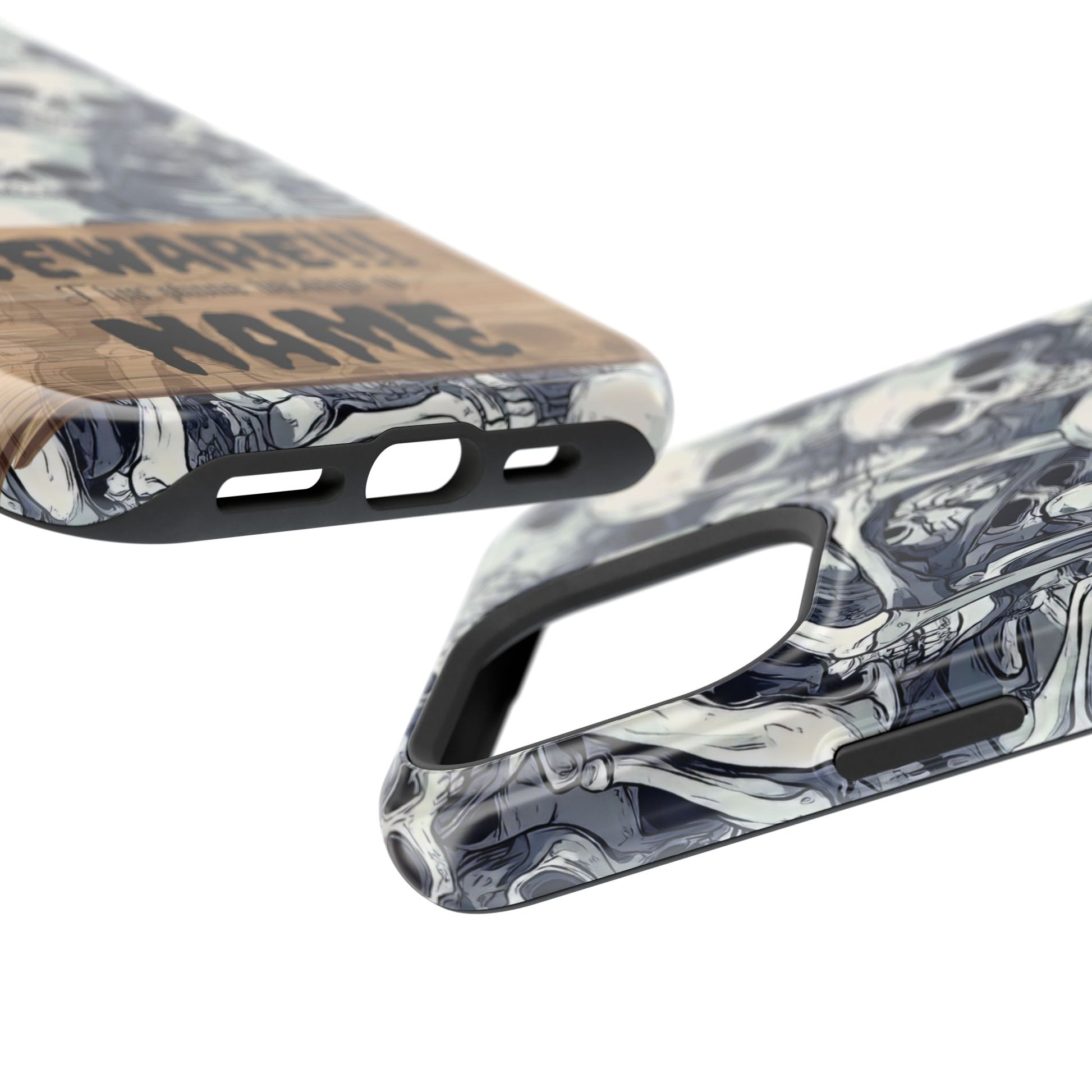 Custom, Personalized Halloween Magnetic Tough Cases for iPhone - Beware Skulls with Name