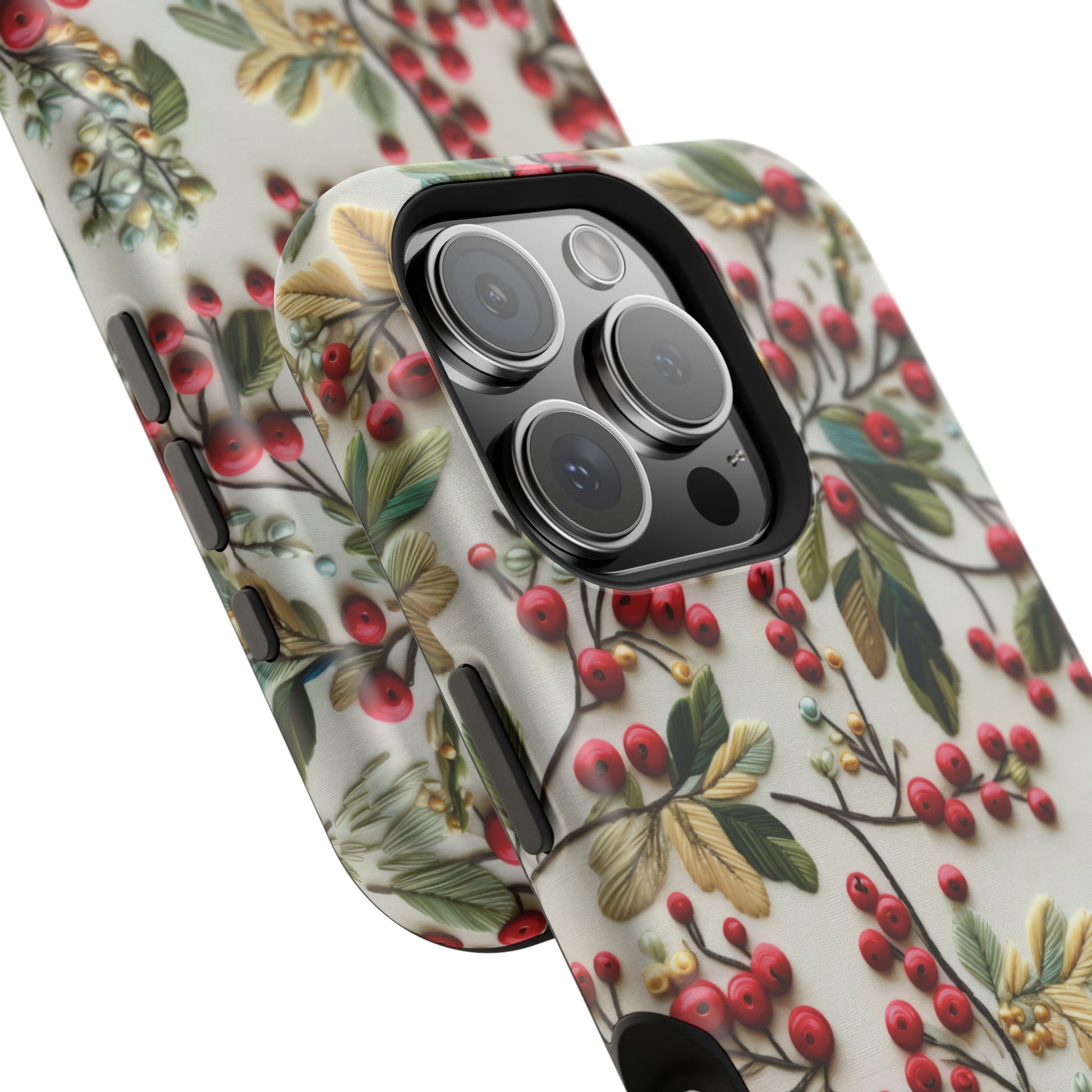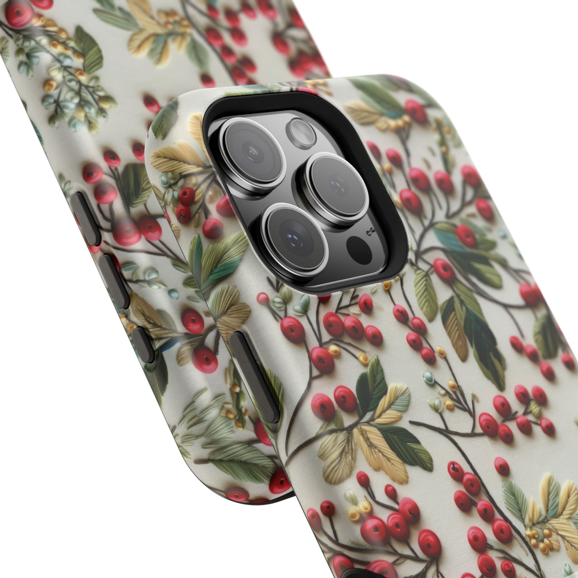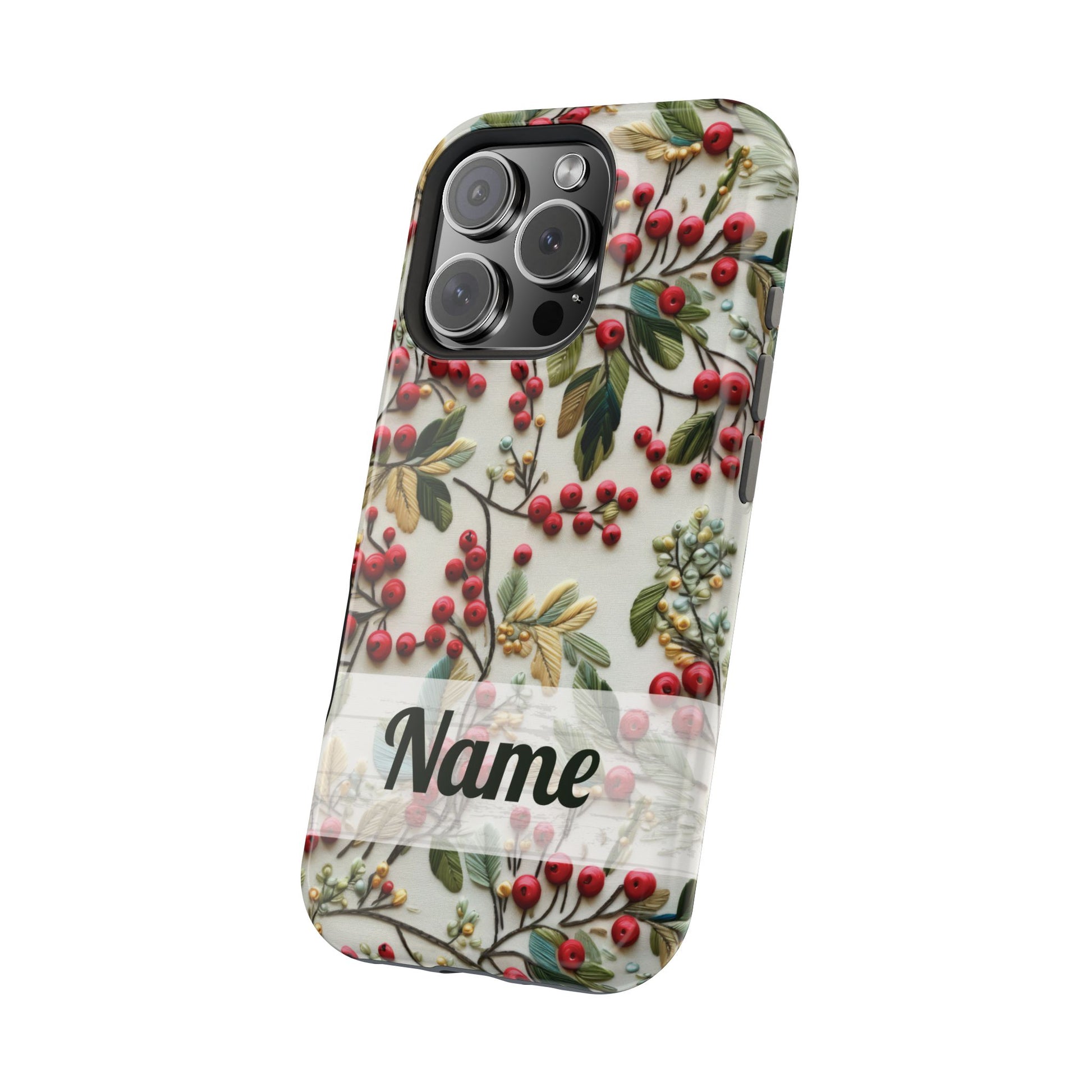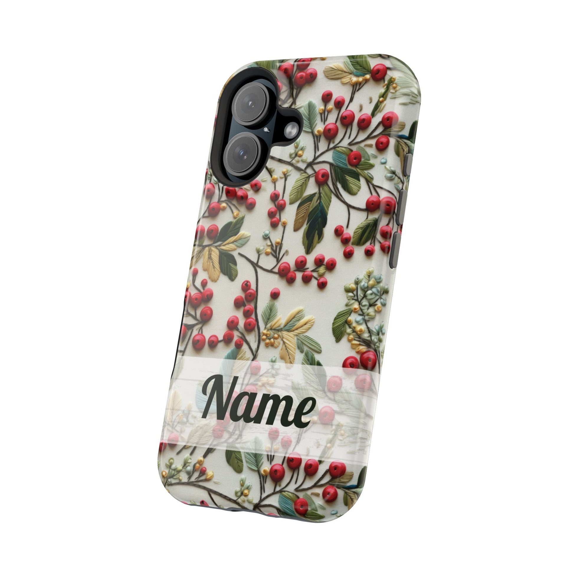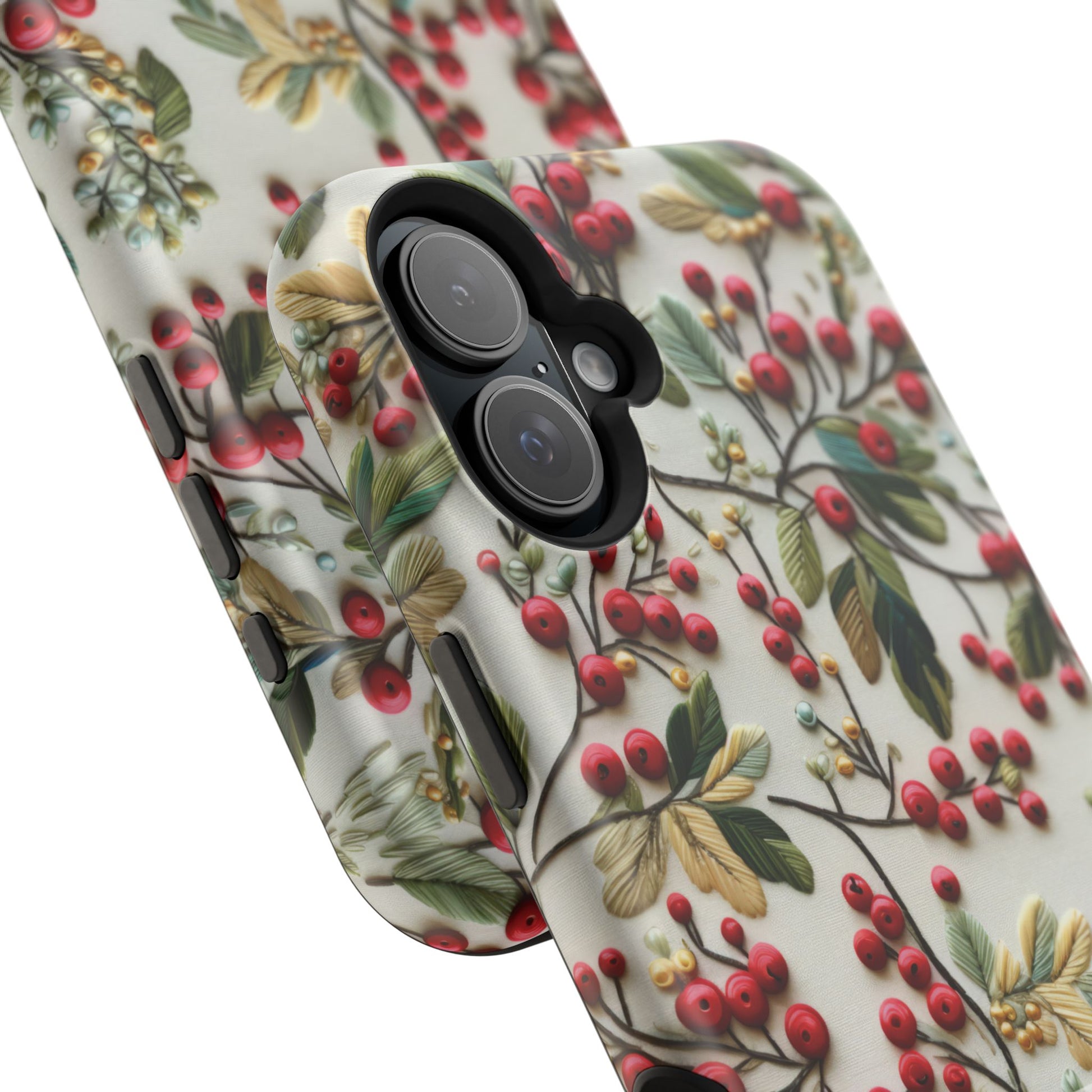 When cozy meets classy, your phone gets a winter wardrobe upgrade! ❄️ This festive magnetic tough case is decked out in a gorgeous faux hand embroidery design featuring holly berries and evergreen leaves—with faux beaded details that bring just the right amount of sparkle (without the pokey bits 🎇).