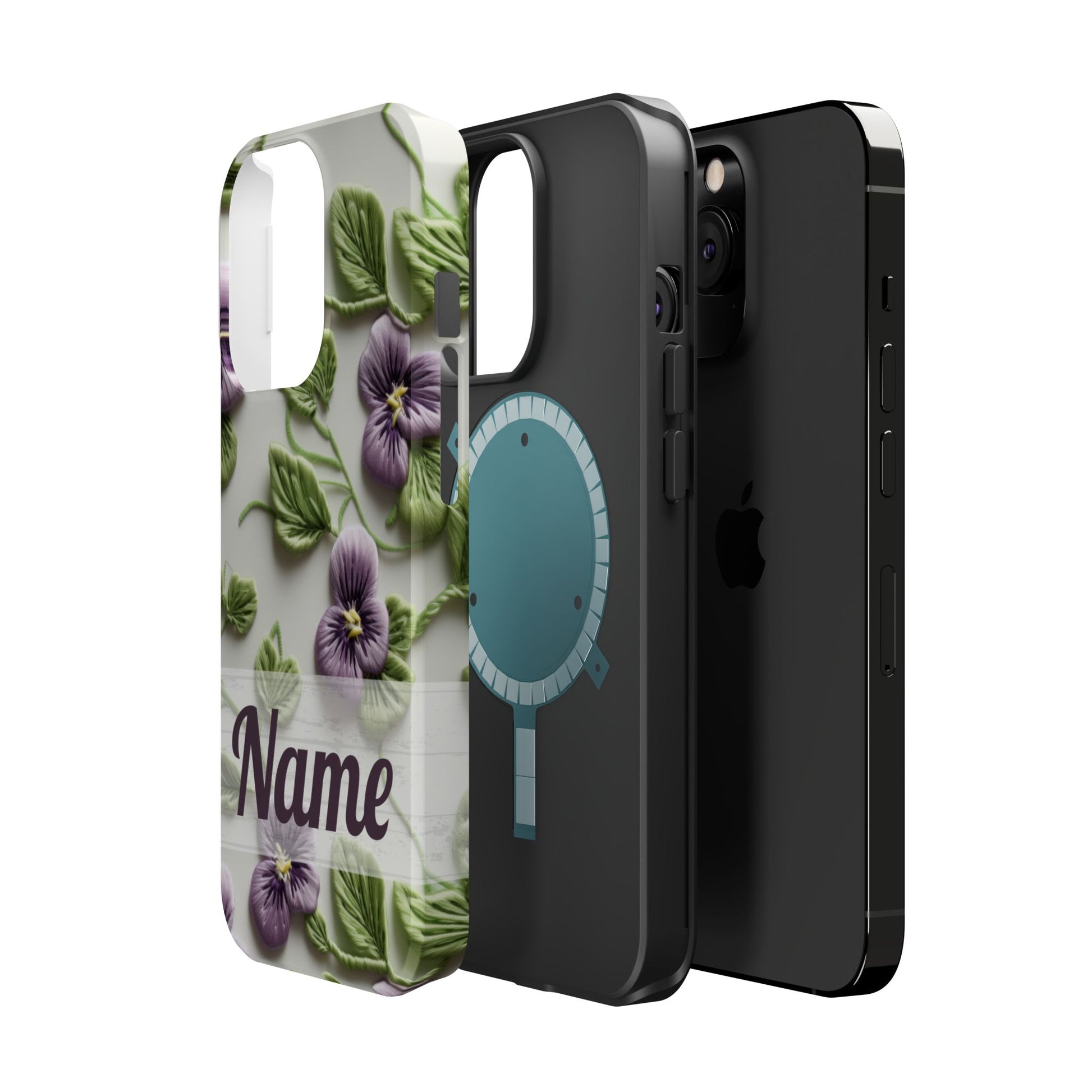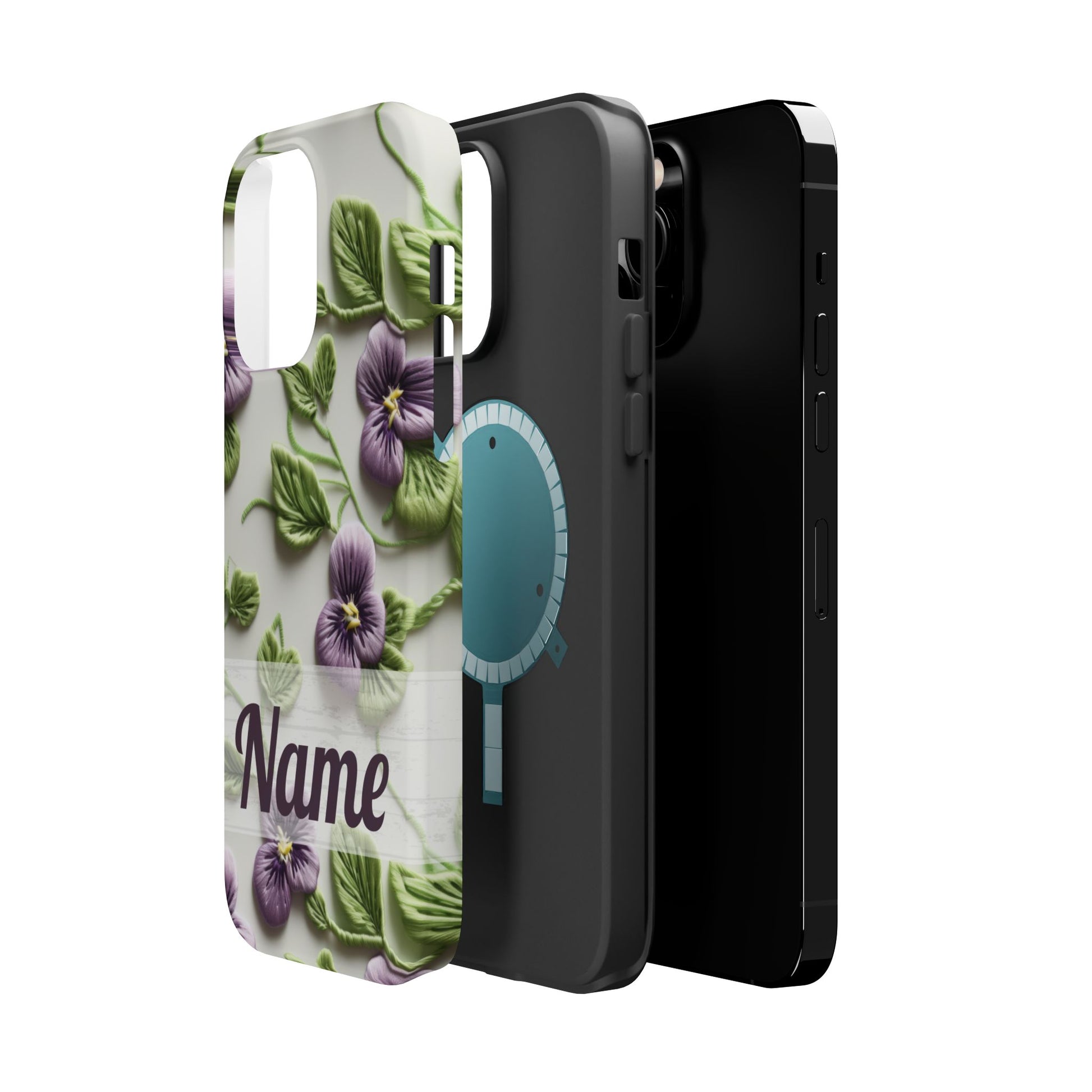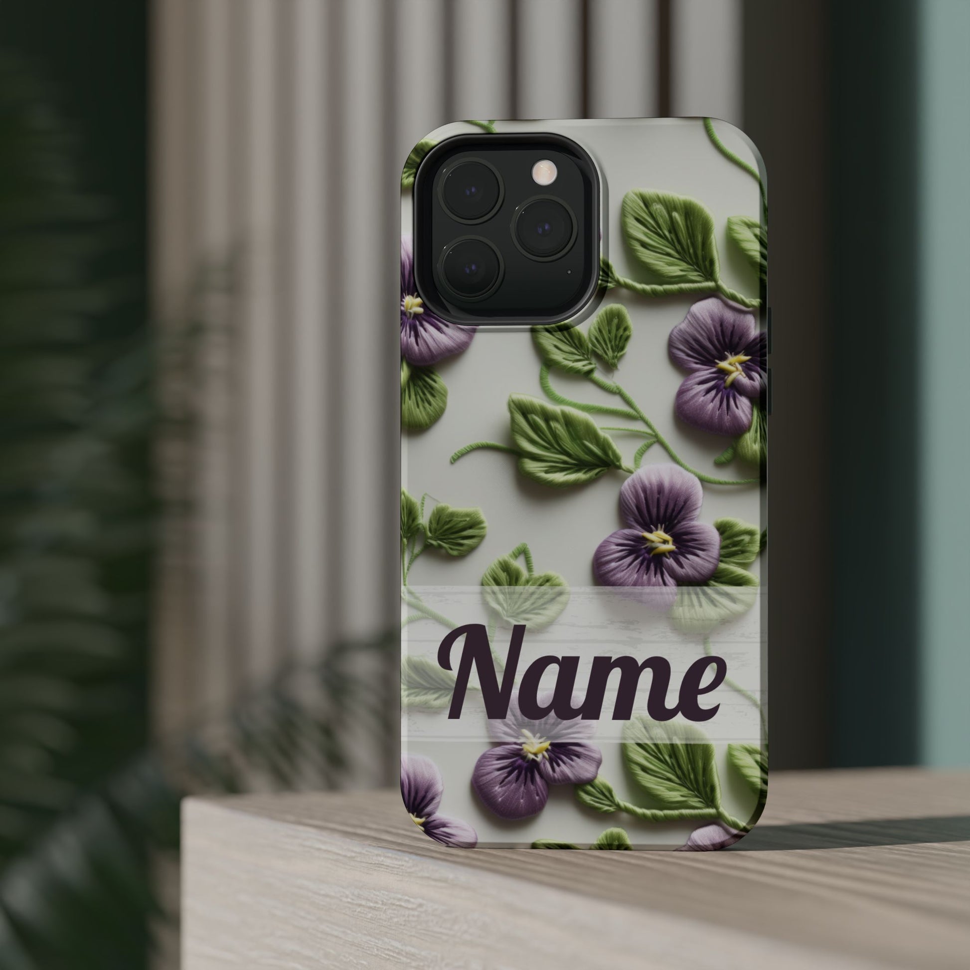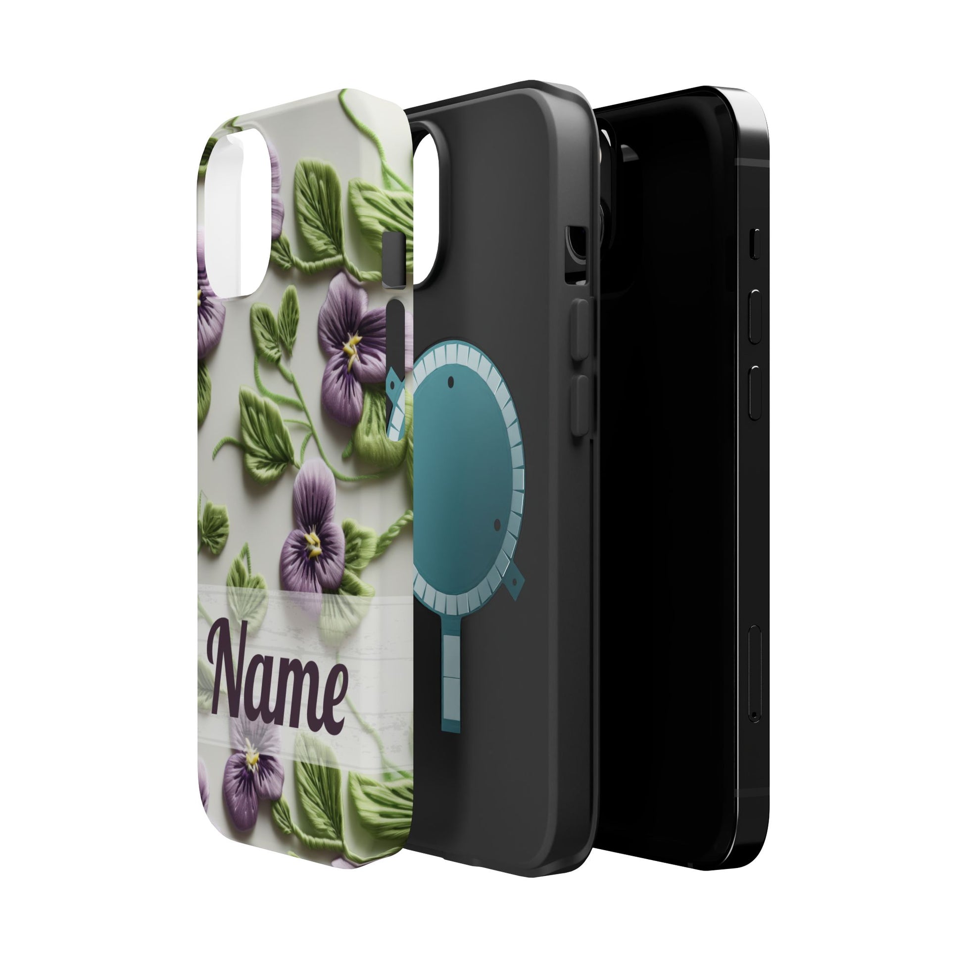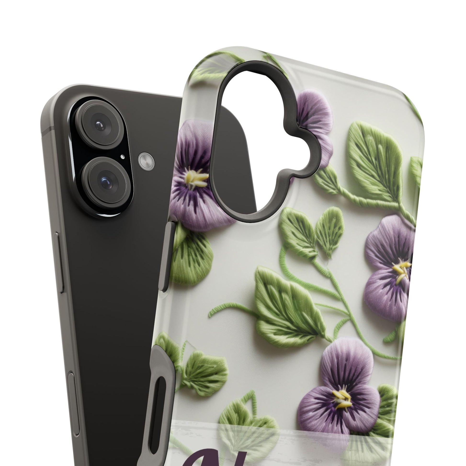 February Birth Flower Phone Case • Violet Embroidery iPhone Cover • MagSafe Gift for Her