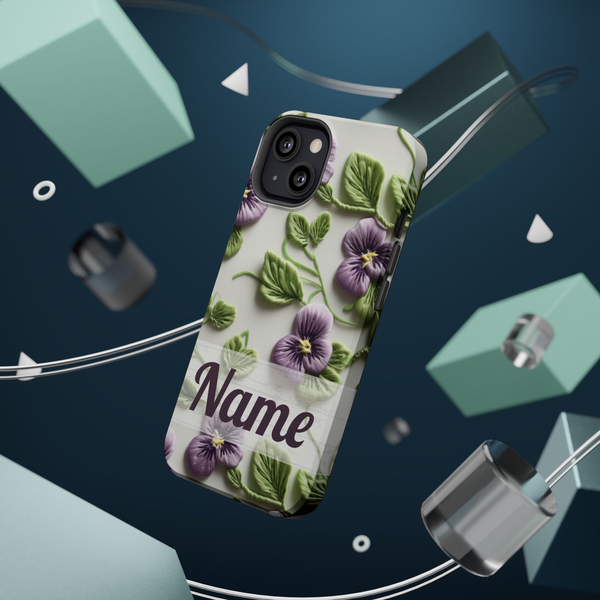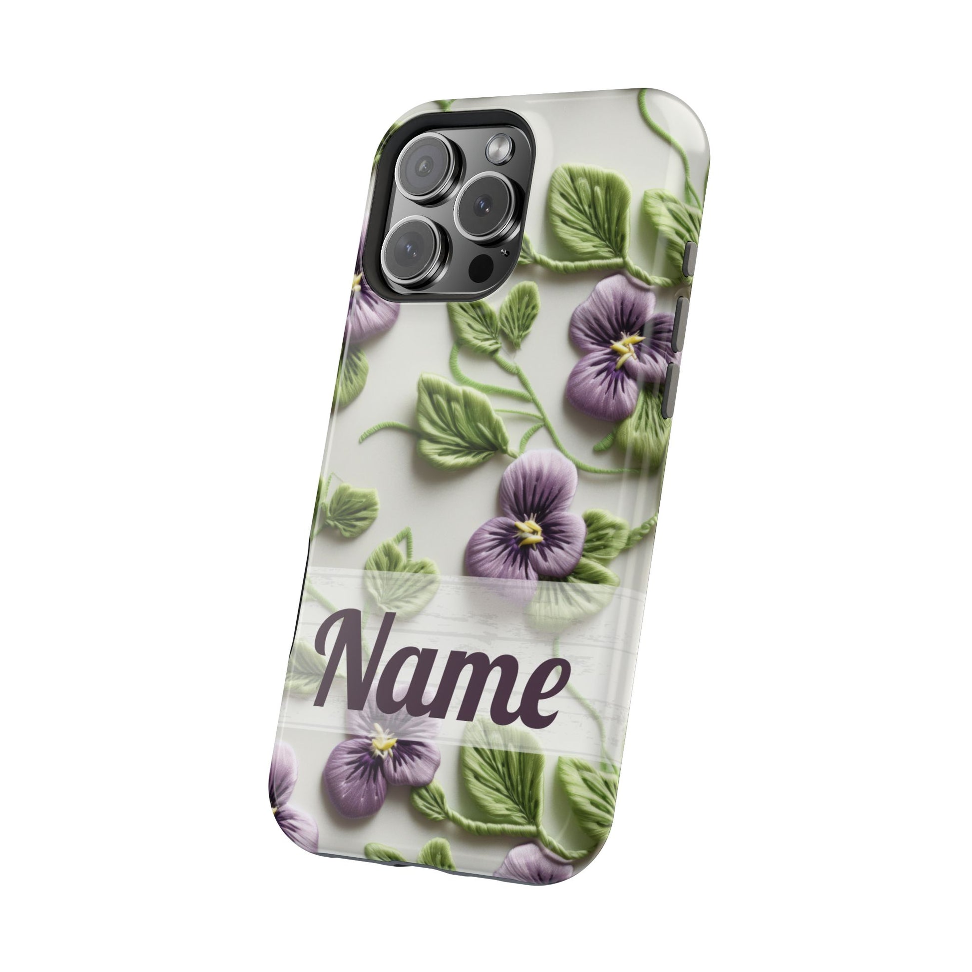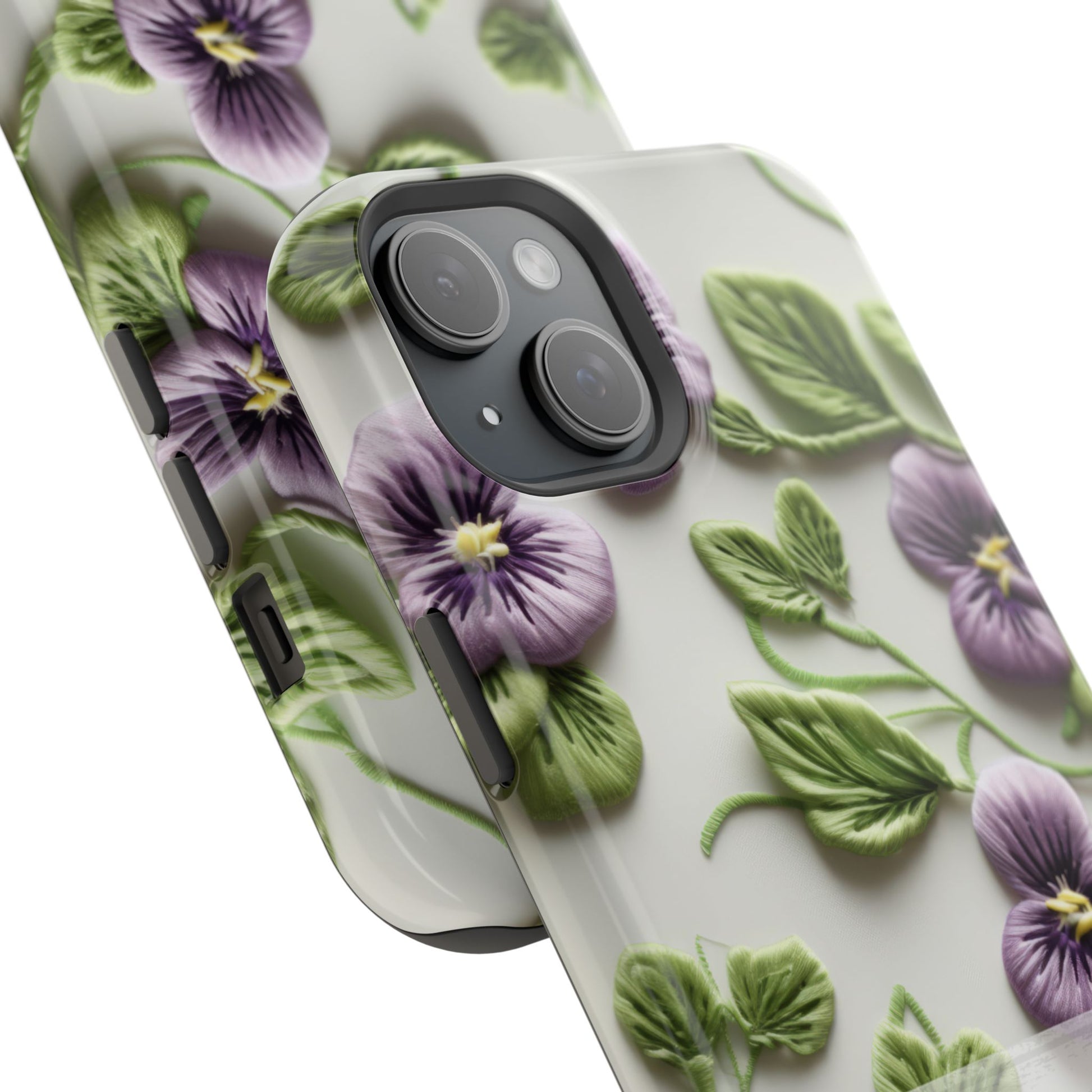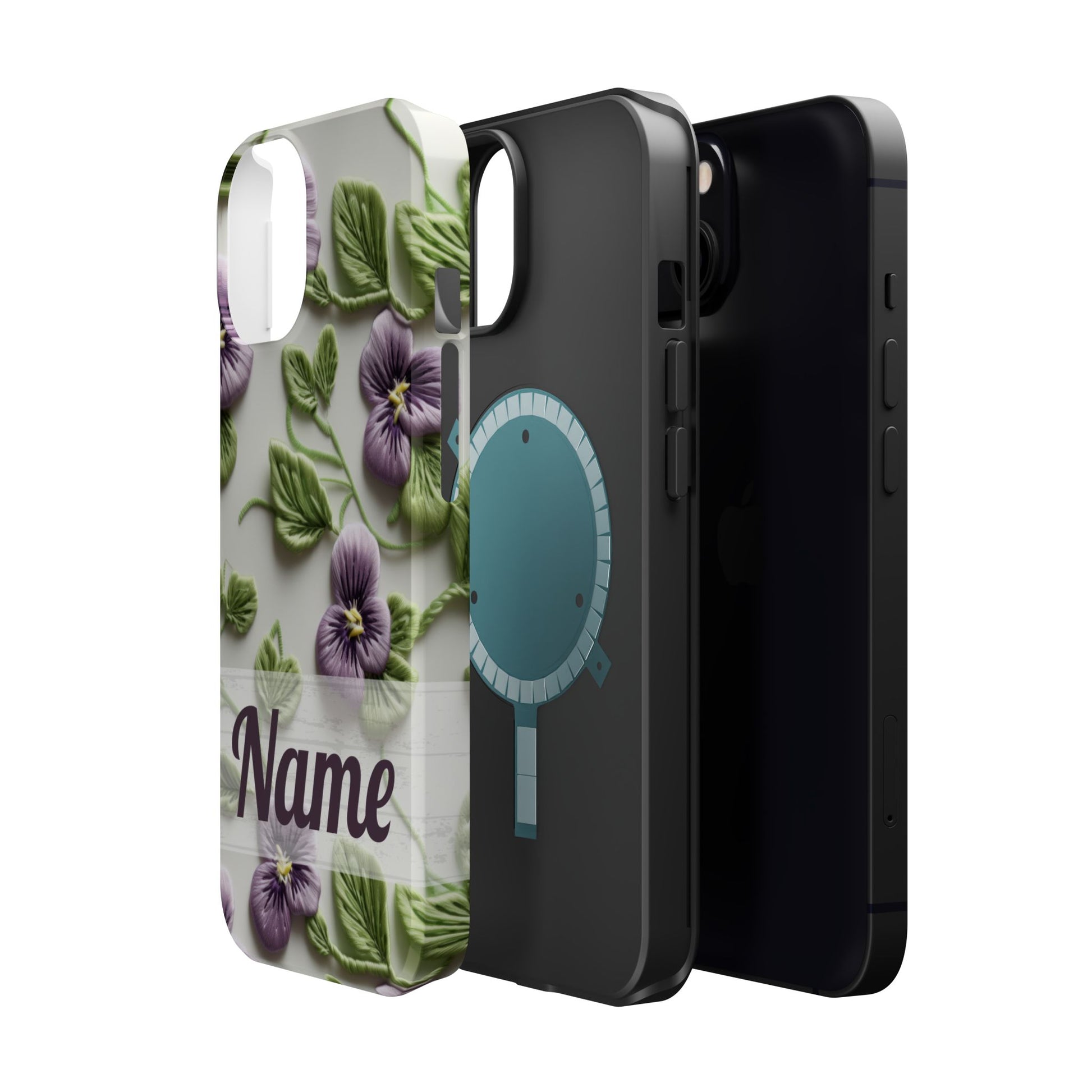 February Birth Flower Phone Case • Violet Embroidery iPhone Cover • MagSafe Gift for Her