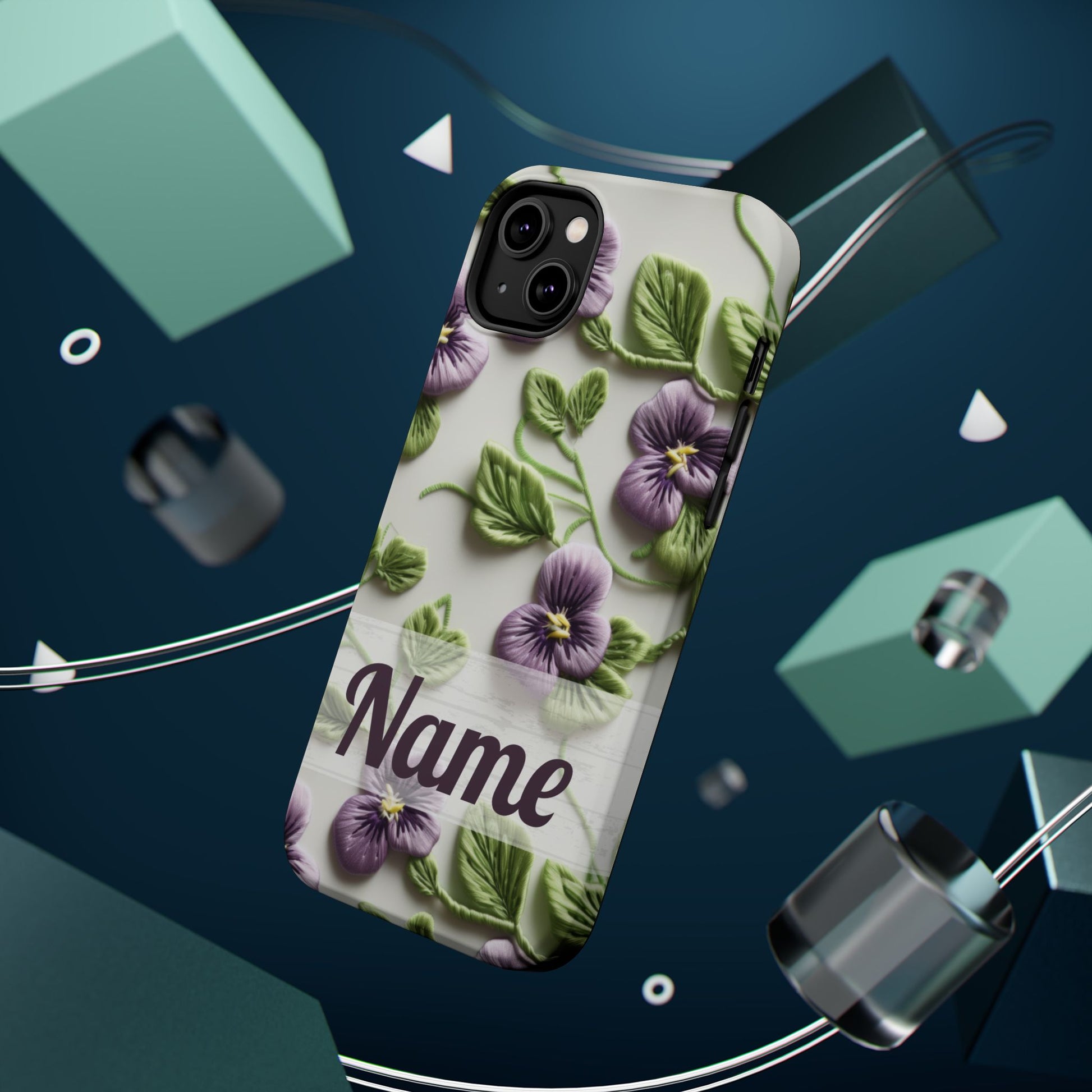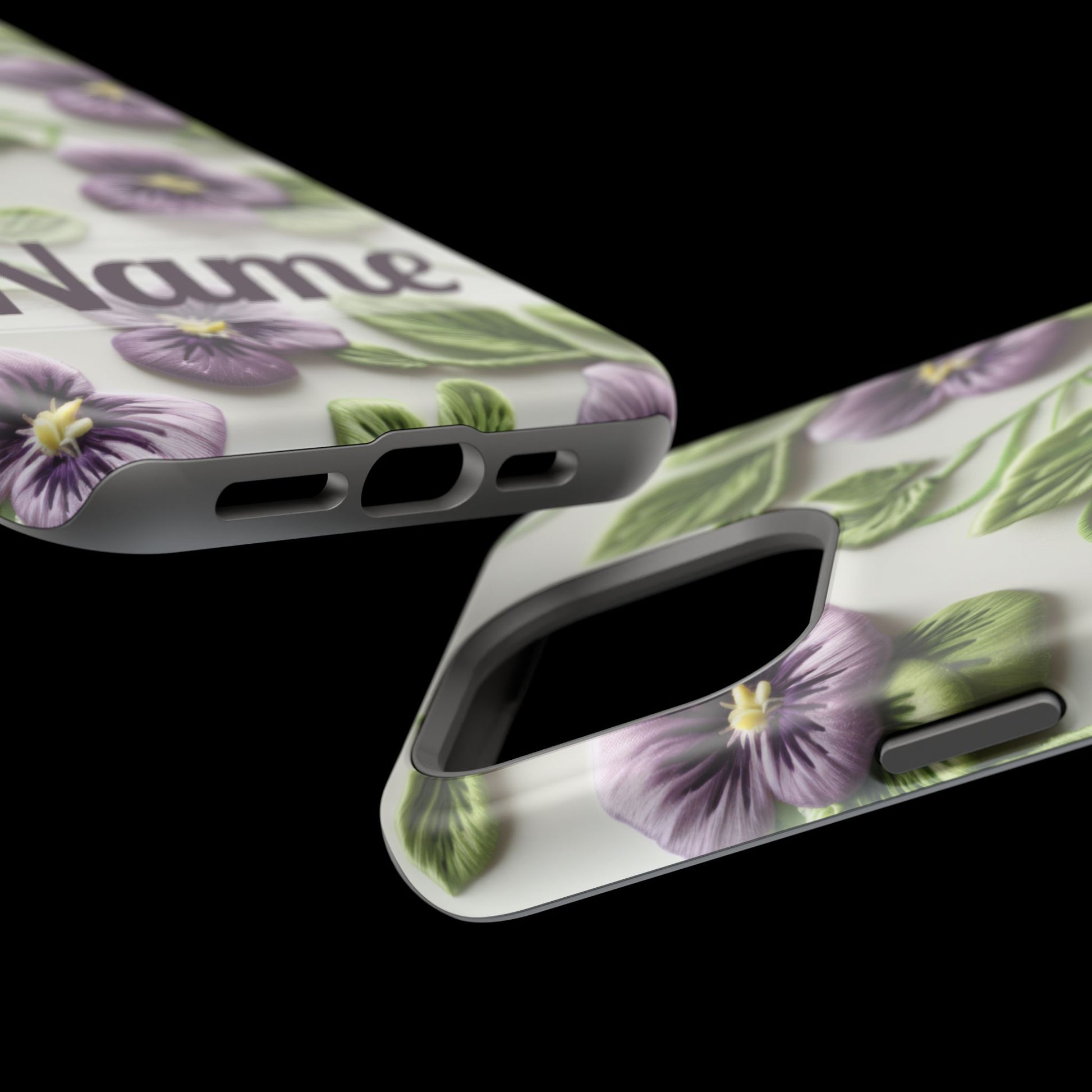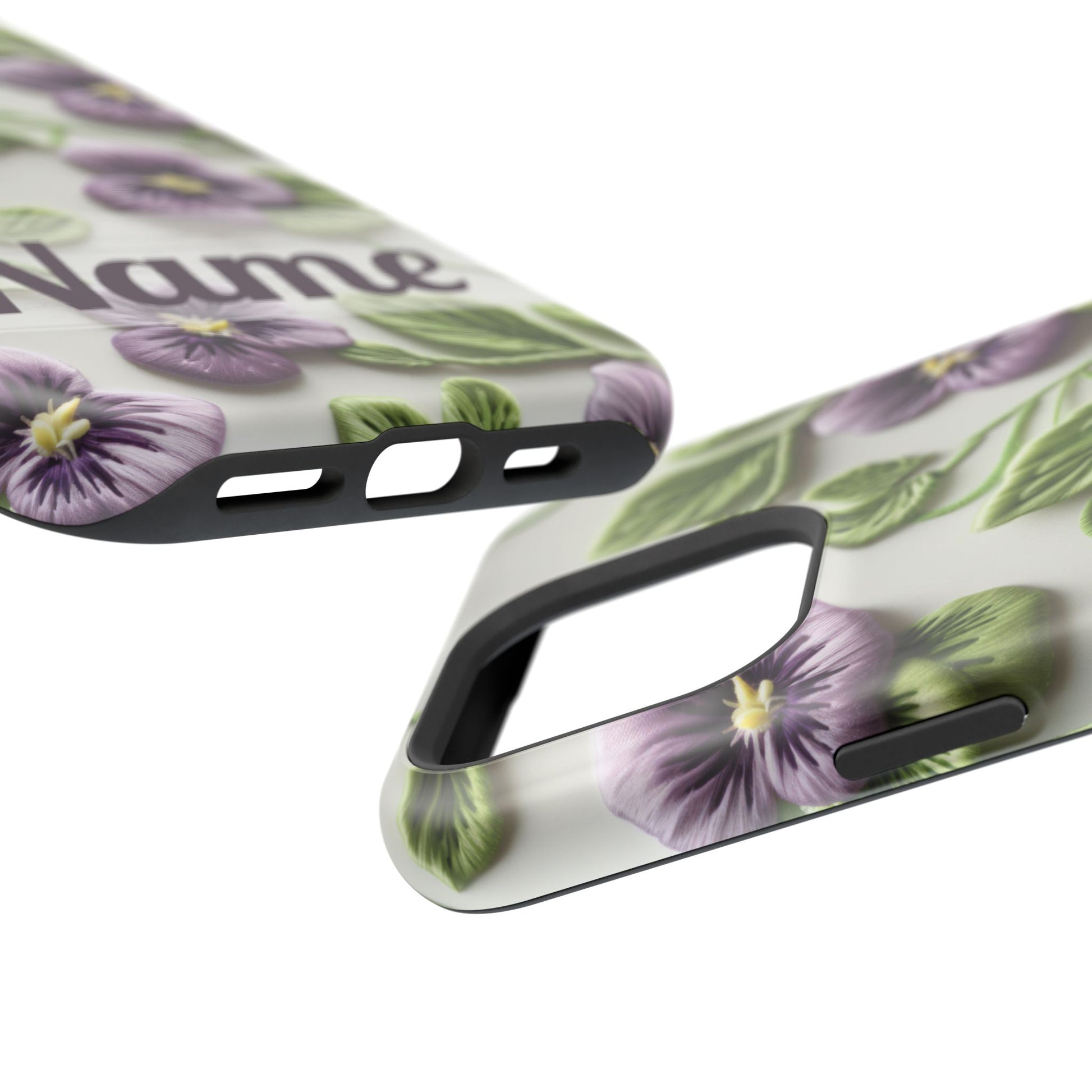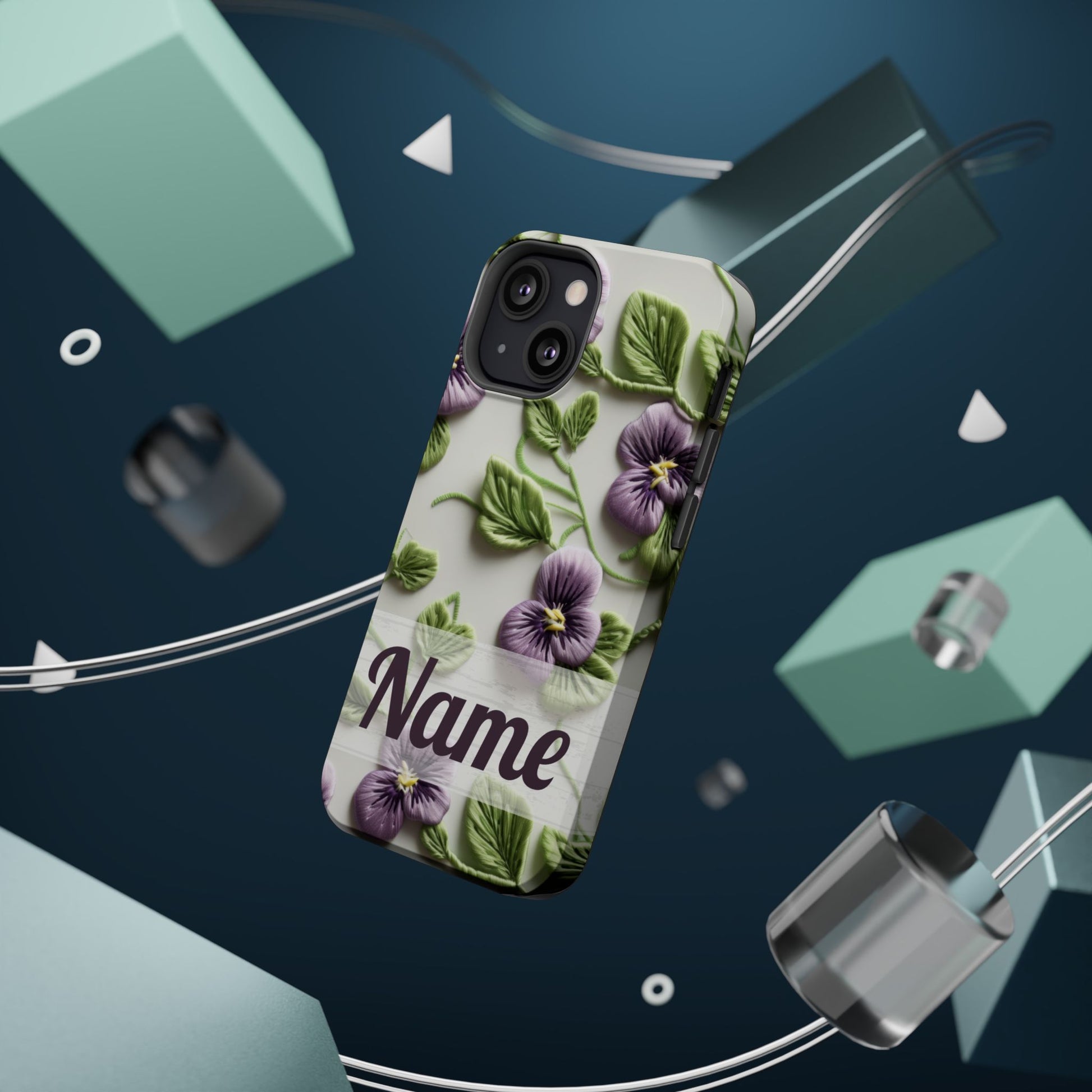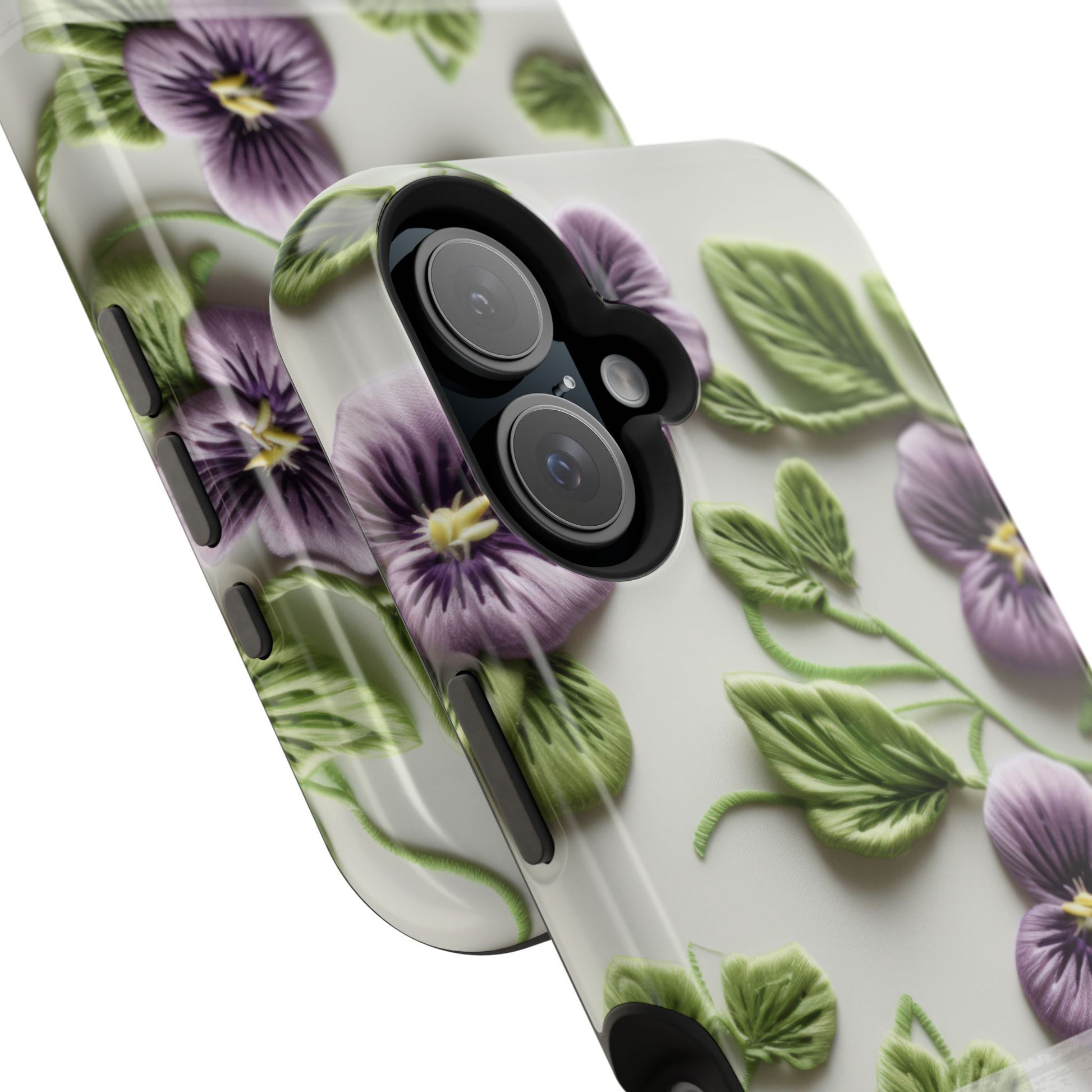 February Birth Flower Phone Case • Violet Embroidery iPhone Cover • MagSafe Gift for Her